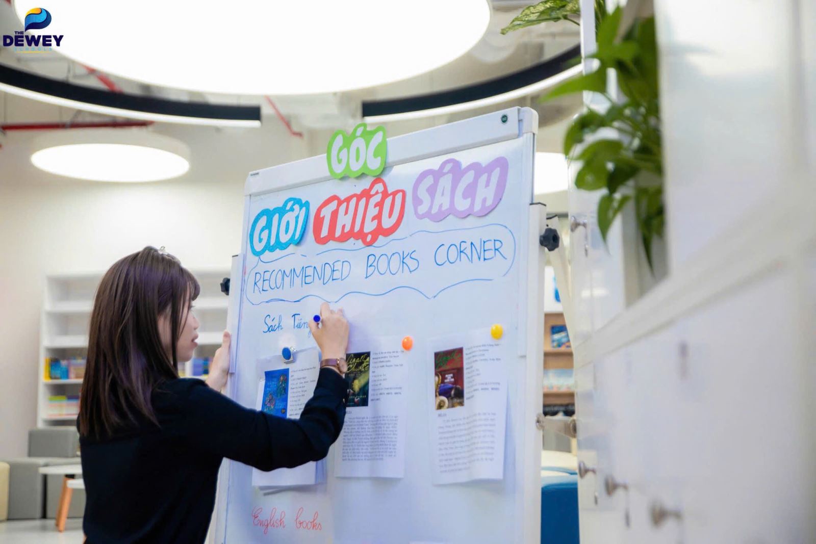 Ở Dewey, đọc sách được rèn luyện để trở thành thói quen và trở thành kỹ năng tự học trọn đời bền vững. Những cuốn sách hay luôn được các thầy cô chọn lọc kỹ càng, phù hợp với từng lứa tuổi để đưa vào danh mục đọc ngay từ đầu năm học như là một mục tiêu nhỏ cho các bạn nỗ lực hoàn thành. Ở Dewey, Học sinh luôn được tạo cơ hội “chạm” nhiều hơn đến sách, “yêu thương” nhiều hơn những cuốn sách thay vì những thiết bị điện tử đang bủa vây ngập tràn chờ thời cơ “đánh cắp” thời gian của các bạn.